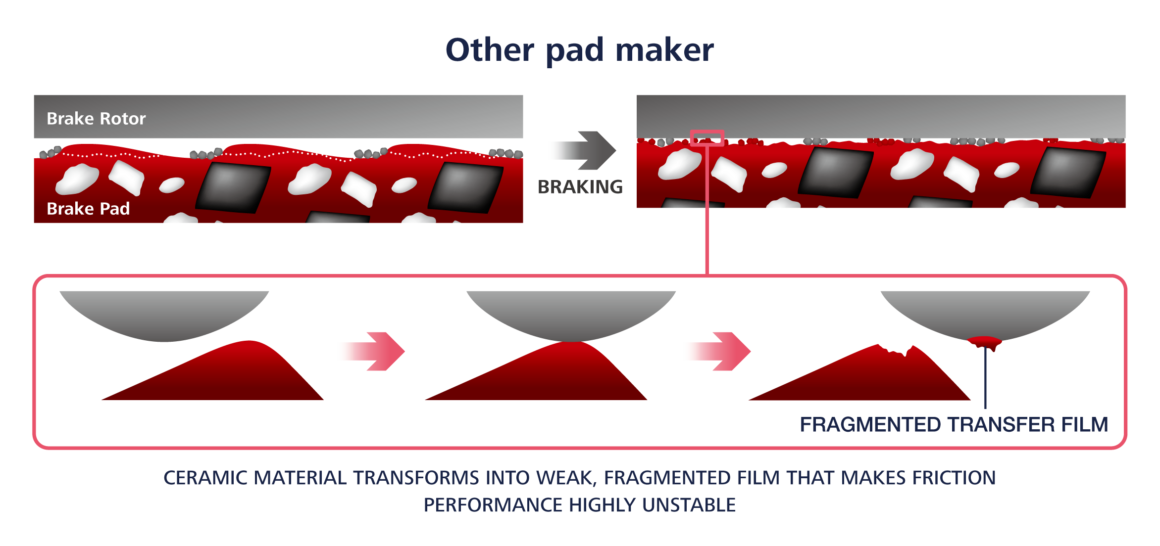 Ceramic Tribo Technology is an advanced OE based chemical technology which utilizes pad material to create a specialized, strong uniform transfer film with the rotor, allowing for improved stability, wear and heat distribution.